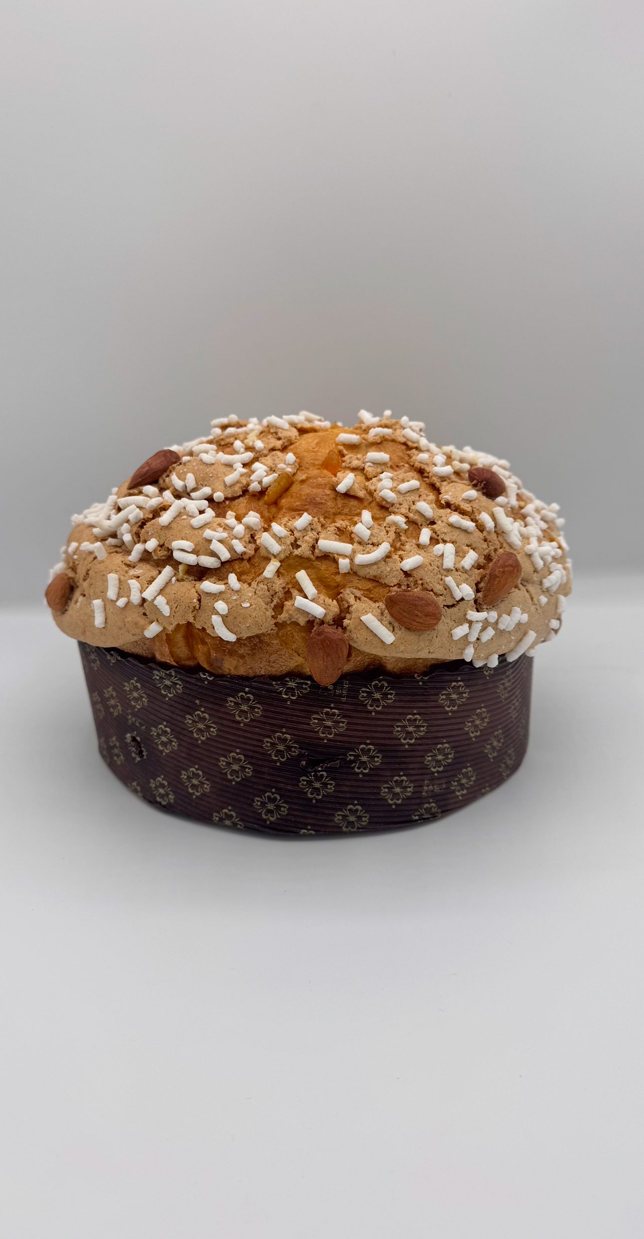 Un soffice panettone tradizionale con uvetta e canditi siciliani, realizzato con lievito madre e ingredienti selezionati. Perfetto per vivere la magia del Natale con gusto autentico.
